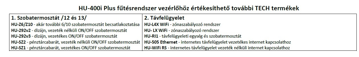 HU-400i Plus fűtésrendszer vezérlőhöz alkalmazható TECH termékek