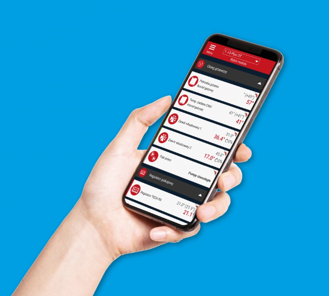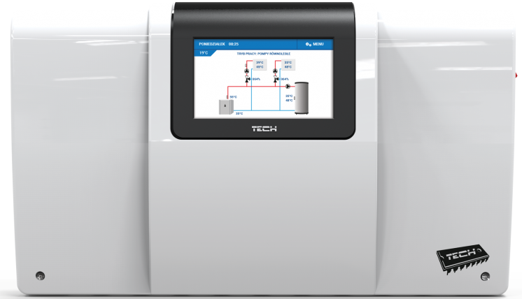 • interaktív TECH szobatermosztát (HU-281RS Exclusiv, HU-296) alkalmazásának lehetősége - ez által a HU-407N helyi távfelügyelete valamint egyes paramétereinek módosítása válik lehetővé a fűtött térben elhelyezett TECH szobatermosztát kezelőfelületéről