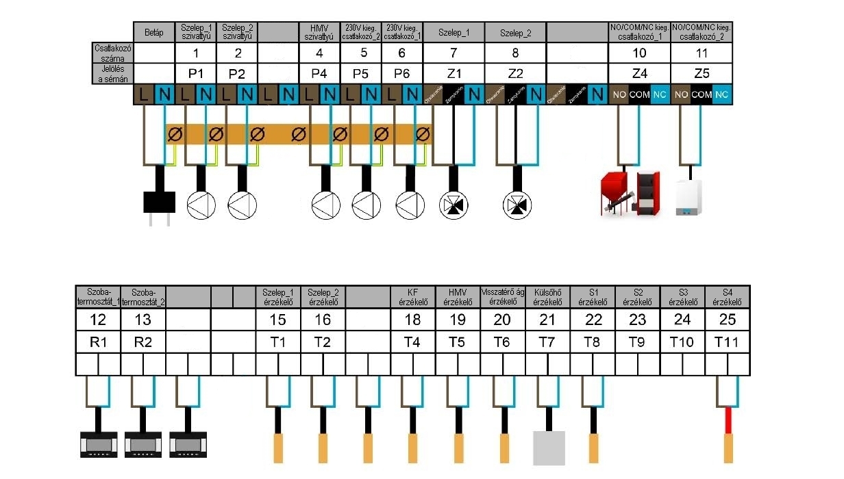 • akár 3db hagyományos ON/OFF szobatermosztát csatlakoztatásának lehetősége